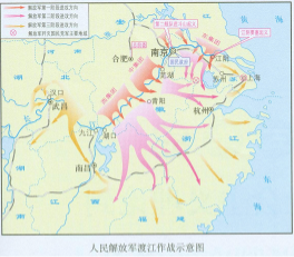 4月21日,毛泽东主席、朱德总司令发布向全国进军的命令。人民解放军迎着敌人的炮火,千帆竞发,横渡长江。国民党军队的长江防线顷刻土崩瓦解。23日,解放军占领南京,统治中国22年的国民政府覆灭。接着,人民解放军向全国进军,追歼国民党残余军队。新民主主义革命取得了基本胜利。