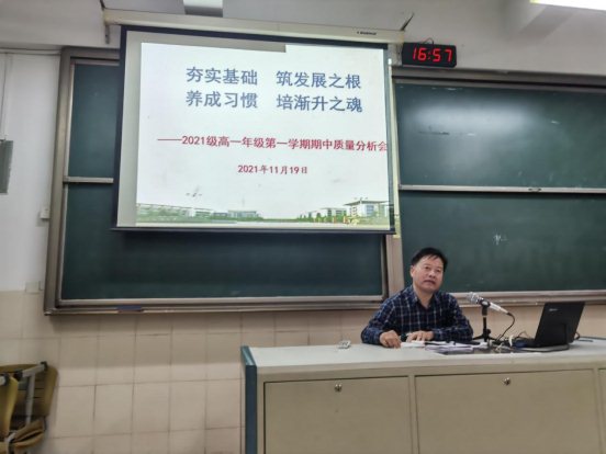 为进一步分析高一期中“六校联考”成绩,总结半学期以来教育教学工作,反思教与学存在问题,明确后阶段年级工作方向,11月19日下午4:10,高一年级在北阶教室召开了期中考试质量分析教师会,戎仁堂校长参会并讲话。