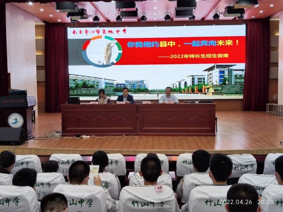 4月22日,2022年南京市中考科技和学科特长生招生工作正式开启。为了更好地推进落实此项工作,近期我校部分行政走进初中校开展特长生招生咨询活动,宣传学校办学成果,解读科技和学科特长生招生相关政策,并对各校优秀学生进行学法交流指导,受到各初中校师生的热烈欢迎和一致赞赏。