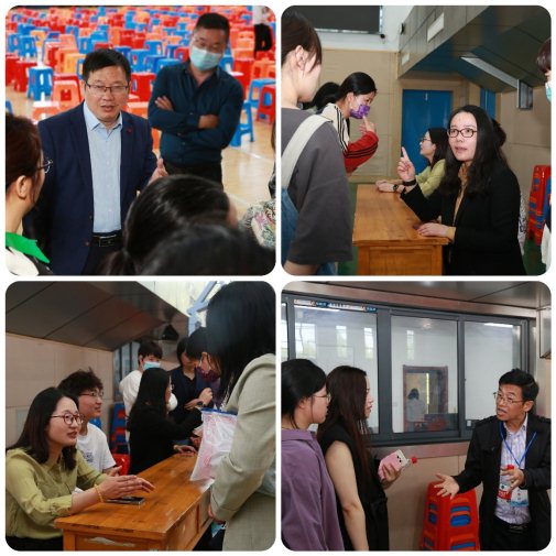 5月2日上午8点起,前来参会的家长和学子就已陆续到来,学校大门至体育馆的道路上络绎不绝,在学校工作人员及志愿者的引领下,大家有序进入体育馆。招生咨询会现场,学校布展了我校学生发展、特色课程、主题活动、高考成绩等系列展板,同时播放介绍学校校园风貌、名师队伍、办学成果、优秀学子、教学改革、特色发展等深厚底蕴的宣传片,让家长和初三学子进一步了解我校。