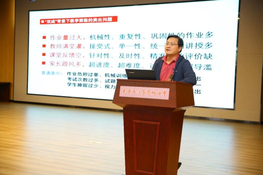随后,市教研室丁玉祥老师做了题为《课堂教学典型问题及数据驱动的精准教学》的报告,从双减政策导向的教学要求、课堂教学面临的典型问题、基于数据驱动的精准教学三个方面和大家分享当前的背景之下,精准教学实施的重要性、操作实施的困境,并和大家分享了支持精准教学的常用工具和平台。