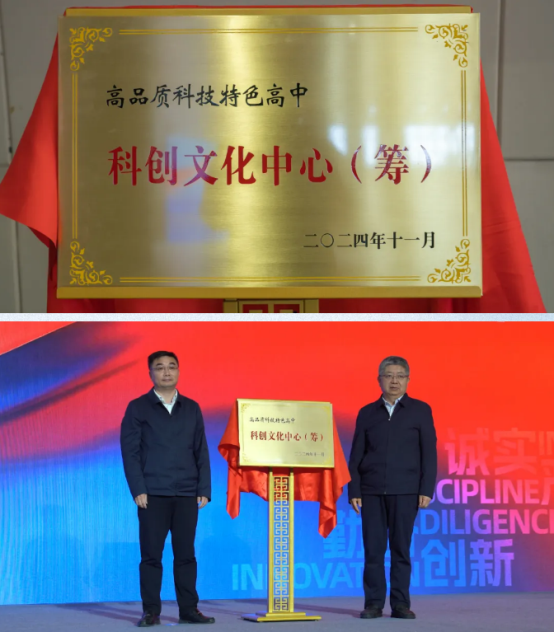 江宁高级中学砥砺前行,开拓进取。2024年初,江宁高级中学成功入选首批江苏省高品质特色(科技)高中建设立项学校。在一片掌声中,江宁区区长黄成文、南京航空航天大学党委常委、组织部长李遥共同为江宁高中高品质科技特色高中科创文化中心(筹)揭牌。